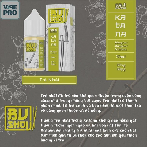 Bushou Katana là một tách trà nhài quyến rũ với hương thơm nhẹ nhàng và dễ chịu. Mùi hương của nhài trong trà nhài là một mùi hương đặc trưng của hoa nhài, mang lại cảm giác thư thái, dễ chịu cho người hút.
